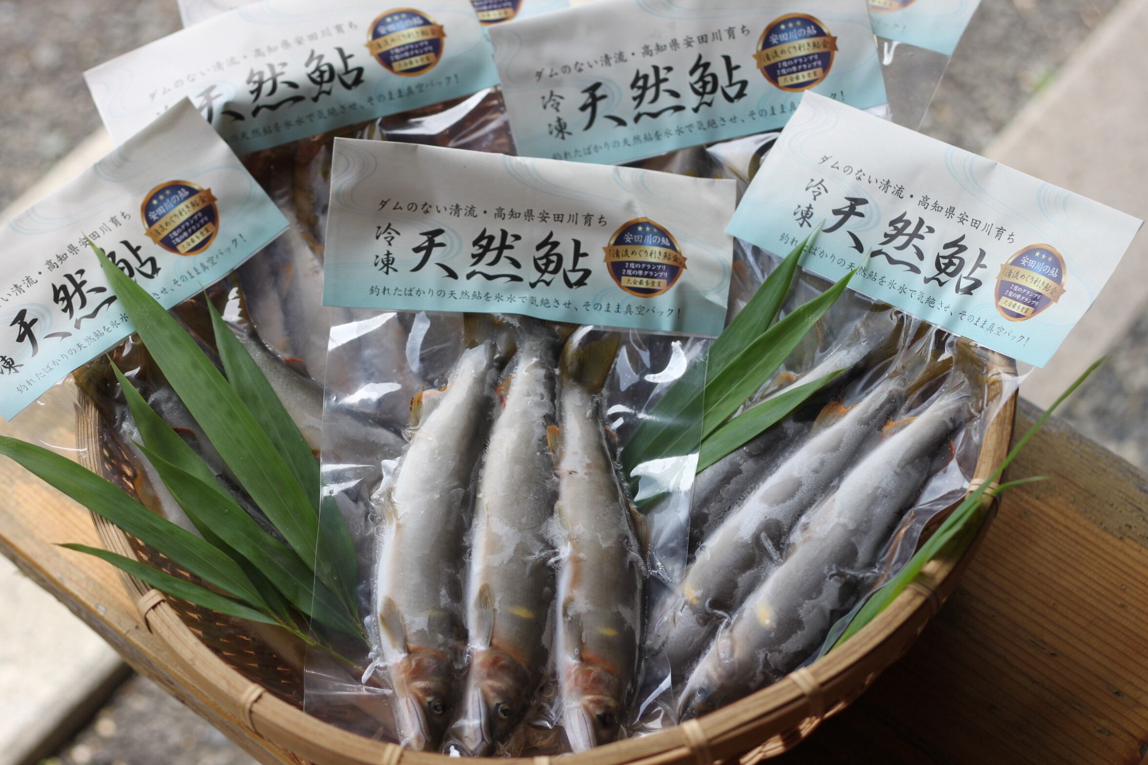 新鮮さを保つため、鮎漁師が安田川で友釣りで掛けた活魚をすぐに氷締めし、真空パックしたのち-25℃の急速冷凍機にて処理しておりますので、安田川直送の鮮度抜群の状態でお楽しみいただけます。
