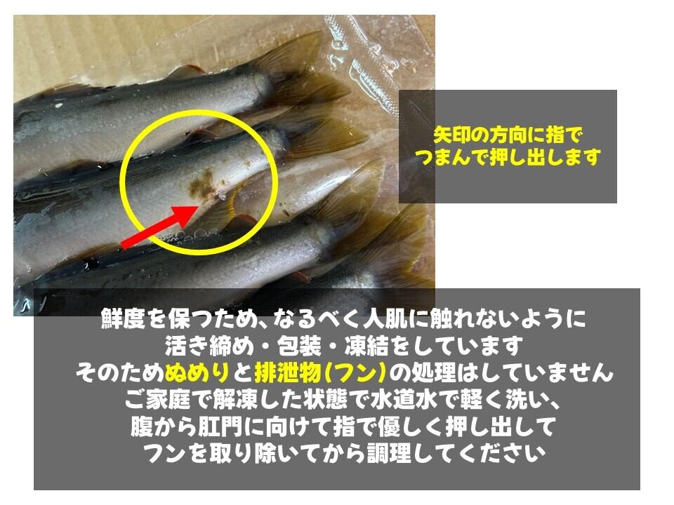 ※天然鮎ですので、サイズのバラつきがございます。また鮮度を保つために排泄物、ぬめりの処理はしていません。